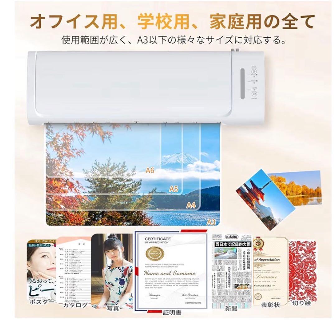 【ラミネーター a3対応】ラミネーターは、ご家庭やオフィスにおける紙資料の守護者です。日常的な接触による普通紙や写真の退色、湿気、しわ、摩耗を効果的に解決し、大切な思い出や重要書類を長く新品同様の状態に保ちます。ラミネート機械 a3 まで対応し、厚さ0.6mmまでの作品も処理可能で、幅広い互換性を備えています。コンパクト設計で省スペースかつ操作も簡単です