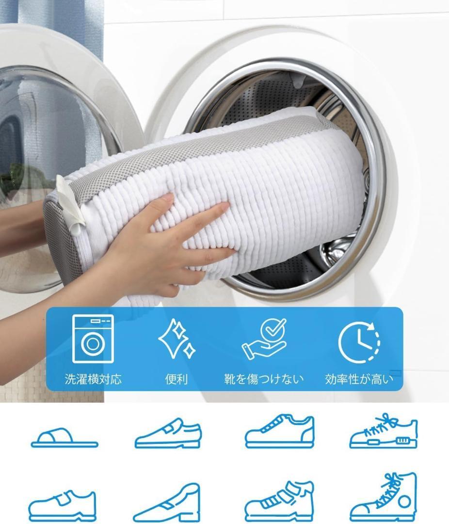 【商品の特徴】 ✔ 洗濯機に入れるだけで簡単キレイ 面倒な手洗い不要。ネットに入れて洗濯機に入れるだけでしっかり洗浄できます。 ✔ 型崩れ・擦れ・傷を防止 クッション性のある構造で、大事な靴を保護。洗濯中の色移りやダメージを軽減します。 ✔ 洗ったまま吊り干しできて便利 ネットの端に吊り下げループ付き。洗ってそのまま干せるので乾燥もスムーズ。 ✔ 高耐久マイクロファイバー使用 内部には10,000本以上の毛羽繊維がついており、手洗いブラシのように汚れをキャッチ。通気性も良く衛生的です。