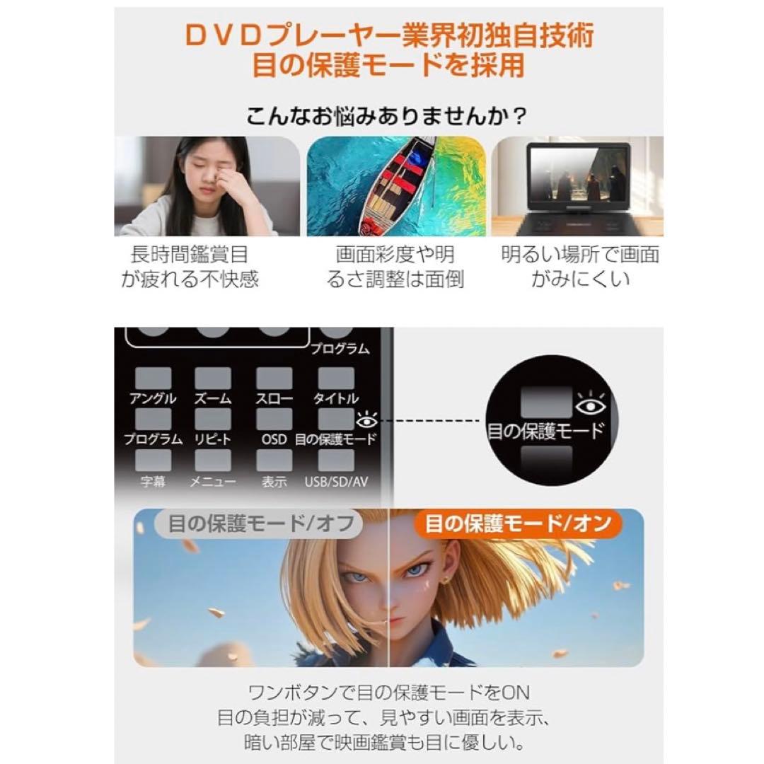 1024*600HD液晶パネル搭載、臨場感たっぷりの映像が魅力、軽量化に実現したうえ省エネ、より鮮明な画像を実現したポータブル dvdプレーヤー 。DVDプレーヤー業界独自技術目の保護モードを採用され、ワンボタンで目の保護モードをONにして、見やすい画面を表示、長時間鑑賞による目に優しい。