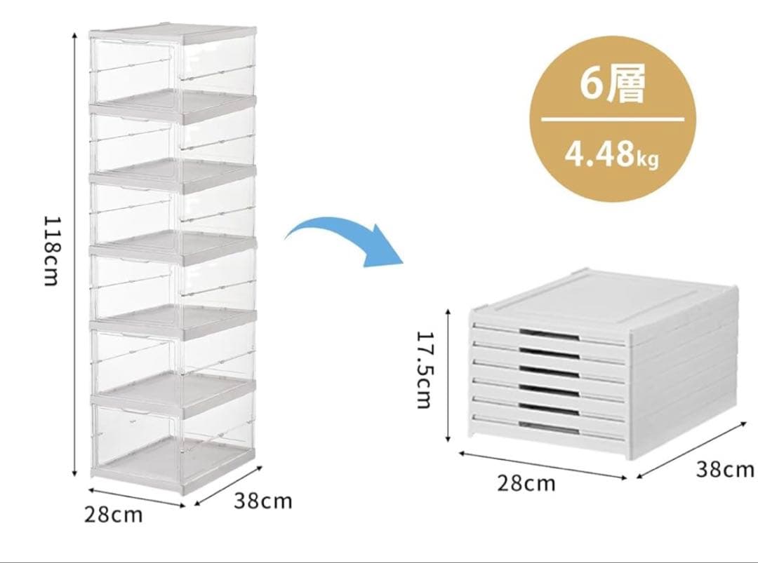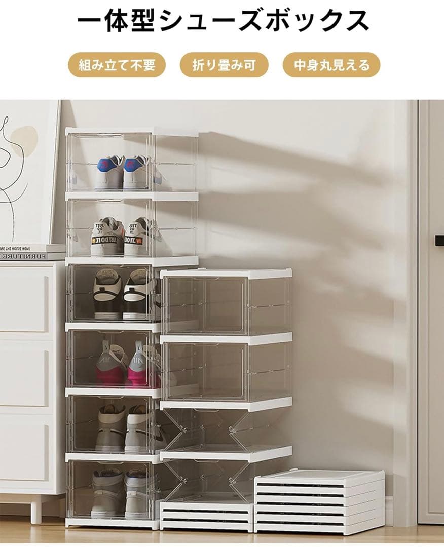 【全面クリアデザイン】 360度透明なので、中身が一目で確認できます。 靴や小物を探す手間がなく、見せる収納としても便利です。