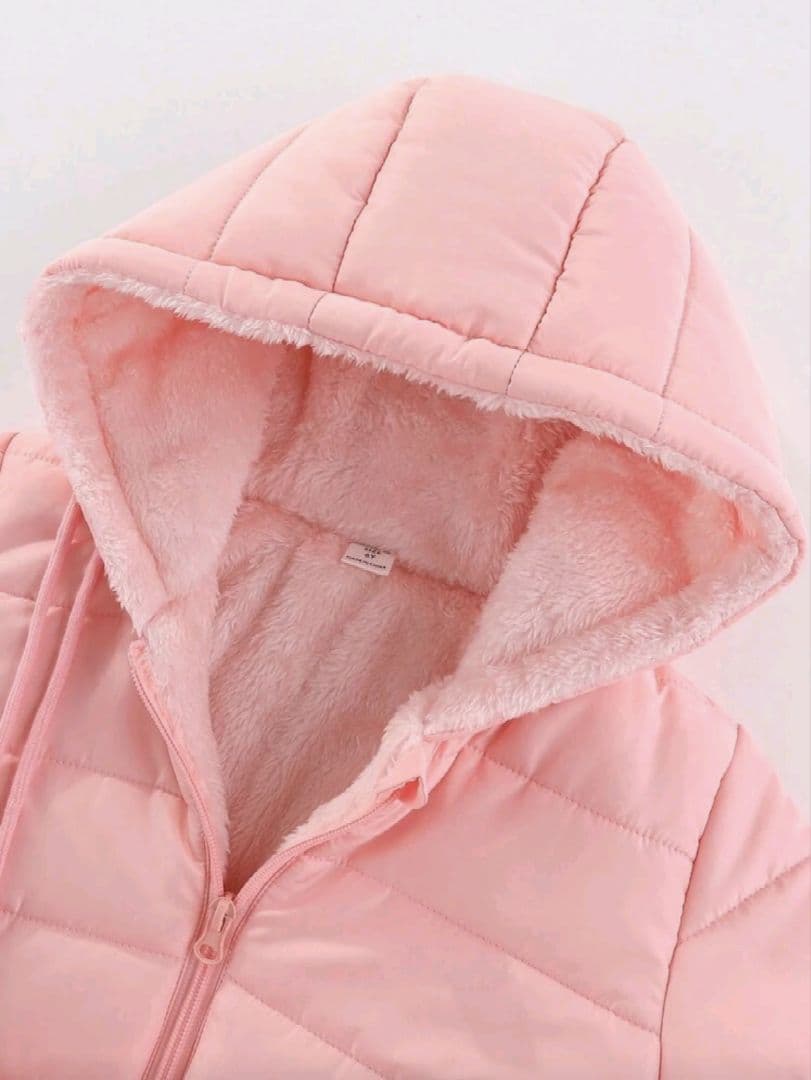 新品、未使用☆ピンク☆中ボア☆フード付きペプラムダウンコート