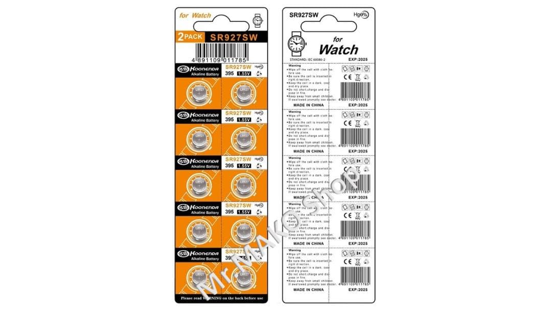 パッケージの表記は酸化銀電池SR927SWですが、一部にアルカリバッテリーの表示があるために出品はLR927とさせて頂きます。
