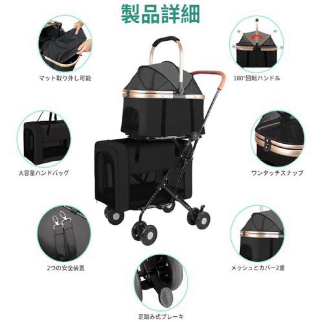 新品✨ペットカート折り畳み 二段式分離 ブレーキ付 360度前輪 多頭飼 大容量