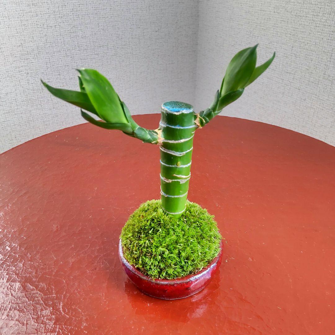 開運・長寿☆可愛い緑の妖精さん☆元気なキングバンブーのミニ盆栽 苔玉 盆栽鉢付き