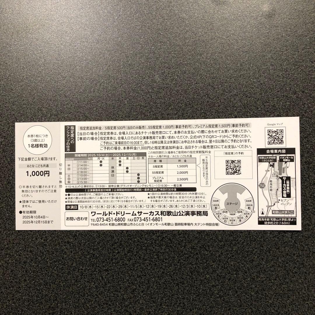 イオンモール和歌山内でのワールドドリームサーカスを見るなら、この割引券を使った方が、絶対にお得ですので、ご購入をお待ちしています。