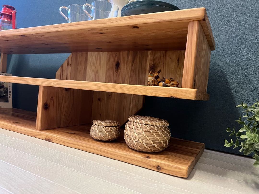 ◎荒々しい木目が美しい杉材を使用したテレビボードです。