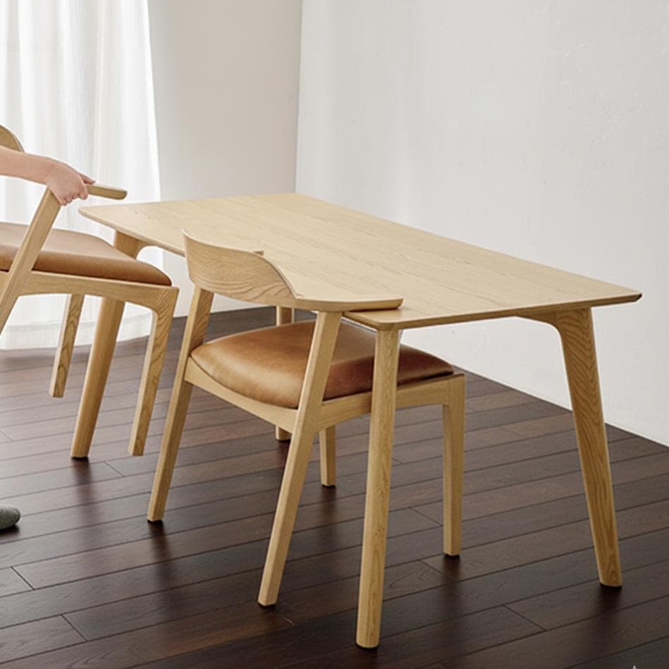 【こだわりのポイント】 天然木アッシュ無垢材使用 美しい木目と耐久性に優れたアッシュ無垢材を使用。お手入れが簡単で長くご愛用いただけます。 美しい曲線美 背中をしっかり支えるよう、曲木加工によって作られた美しい曲線が体にフィットします。 お掃除らくらく機能 肘掛け部分をテーブルに掛けることができ(画像参照)、床のお手入れやお掃除ロボットがスムーズに通れます。 (テーブルの高さが70cmの場合、厚み10cmまでのロボットに対応可能です。)