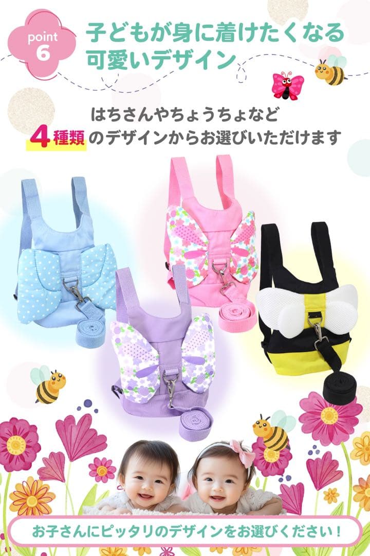 迷子防止ハーネス 黒と黄色 蜂デザイン