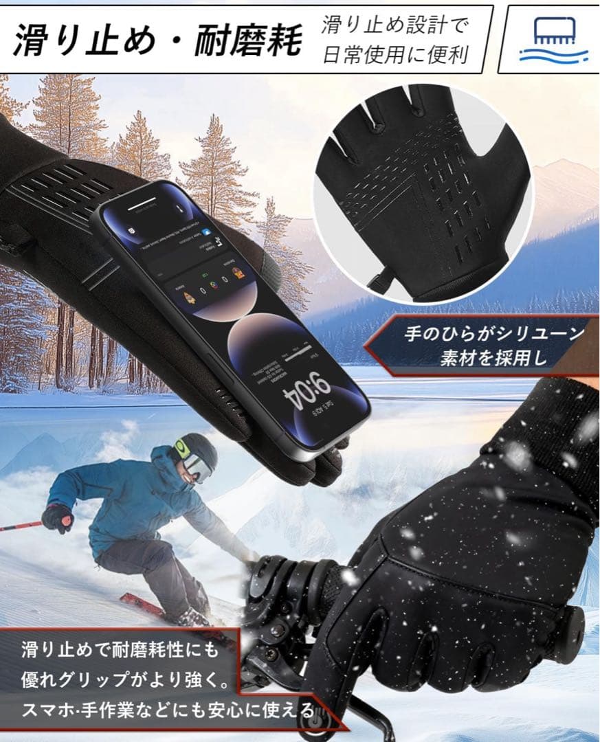 【優れた滑り止め設計】防寒手袋の手のひらと指はすべり止めであり、耐摩耗性のシリコン付き、擦や接着力がアップ、スマホなどを持っても滑りにくく、物を掴む際にしっかりホールドできます。サイクリングやランニング時の安全性向上にも貢献。