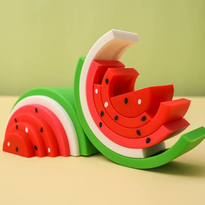 西瓜積み木 シリコンパズル スイカ シリコン製 立体パズル スタッキングゲーム すいか色系 ビルディング・ブロック 6ピース