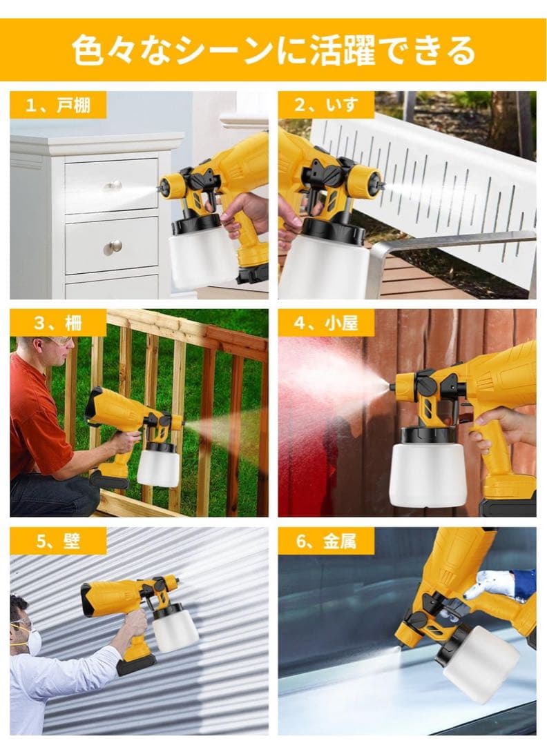 スプレーガン 充電式 電動塗装機 電動工具スプレーガン 噴射量/噴射角度調節可能 水性・油性・ペンキ・塗り・DIY・タンク1000ml・日本語取扱説明書付き