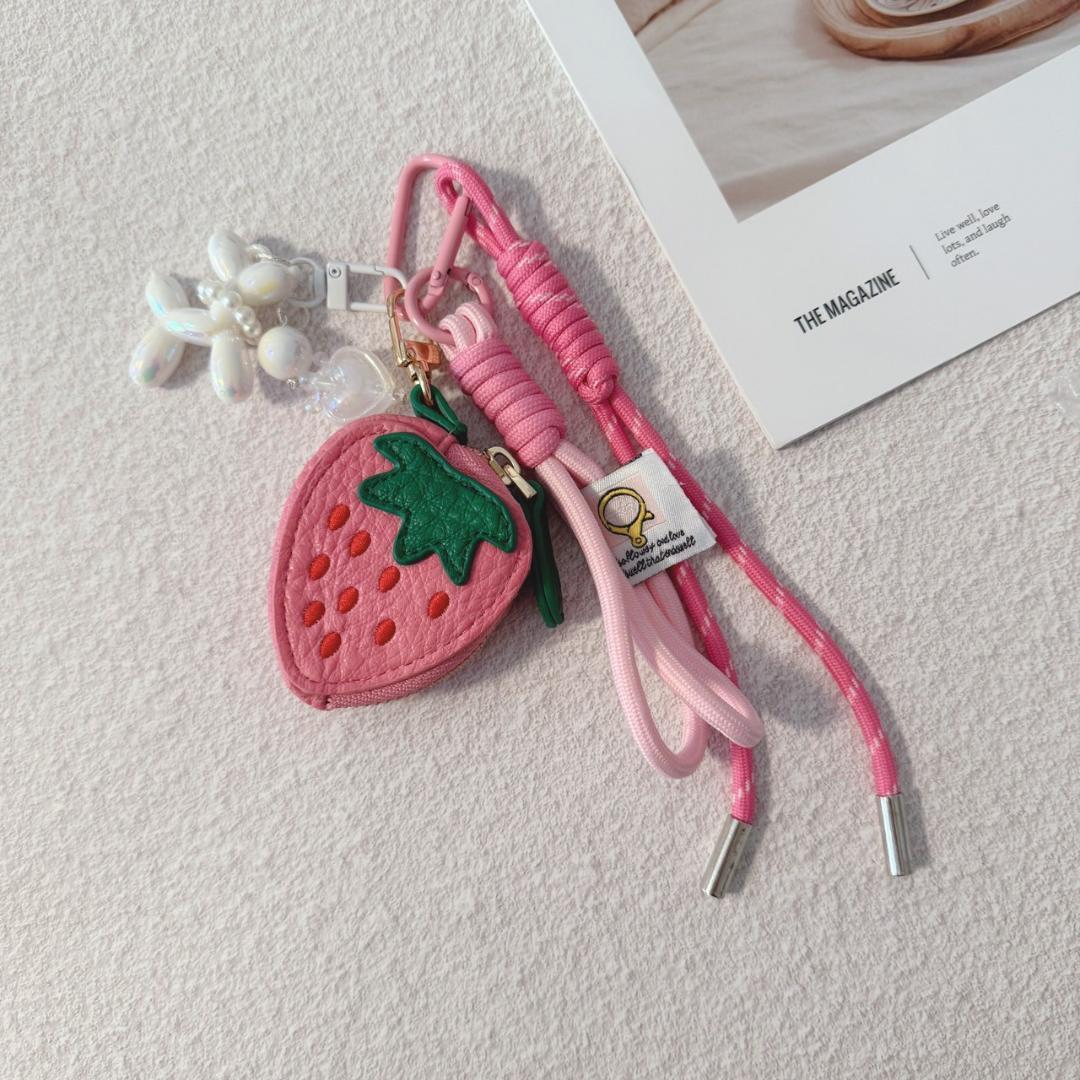 じゃらじゃらキーホルダー イチゴポーチ トイプードル パラコード バッグチャーム