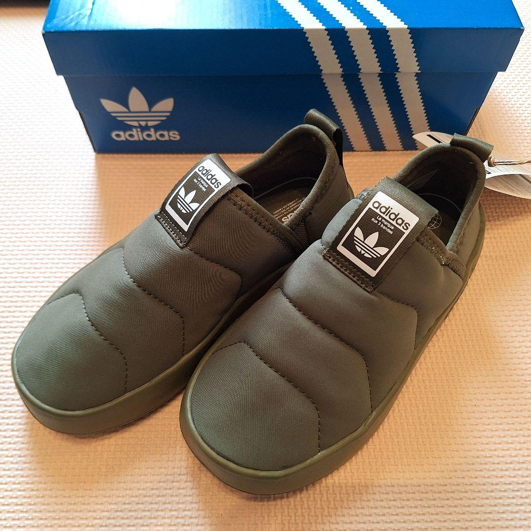 【adidas originals】 IF7804 Adidas Puffylette 360 C KHAKI アディダス パフィレッタ カーキ スリッポン シューズ 20.0cm 新品未使用ですが、素人保管のため神経質な方はお控えください。 箱のまま簡易包装で発送予定。箱潰れがあります。 以下引用 サンダルの気楽さとふんわりとしたデザインを一つにした、どこまでも優しい履き心地が特徴のキッズシューズ。 クッション性と足裏を支えるサポート力もある、屈曲性に優れたEVAソールを採用しているから、室内でも屋外でも快適に履ける。 さらに、一瞬で脱ぎ履きできる、スリッポン構造も魅力。 この製品は、アッパーに50%以上のリサイクル素材を使用するなど、プラスチックゴミ ゼロの未来を目指すアディダスの取り組みの一つをカタチにしている。 カラー:Olive Strata / Olive Strata / Cloud White - ブランド: adidas - サイズ: 20.0 - 色: オリーブグリーン - ソールのデザイン: ダイヤモンドパターン