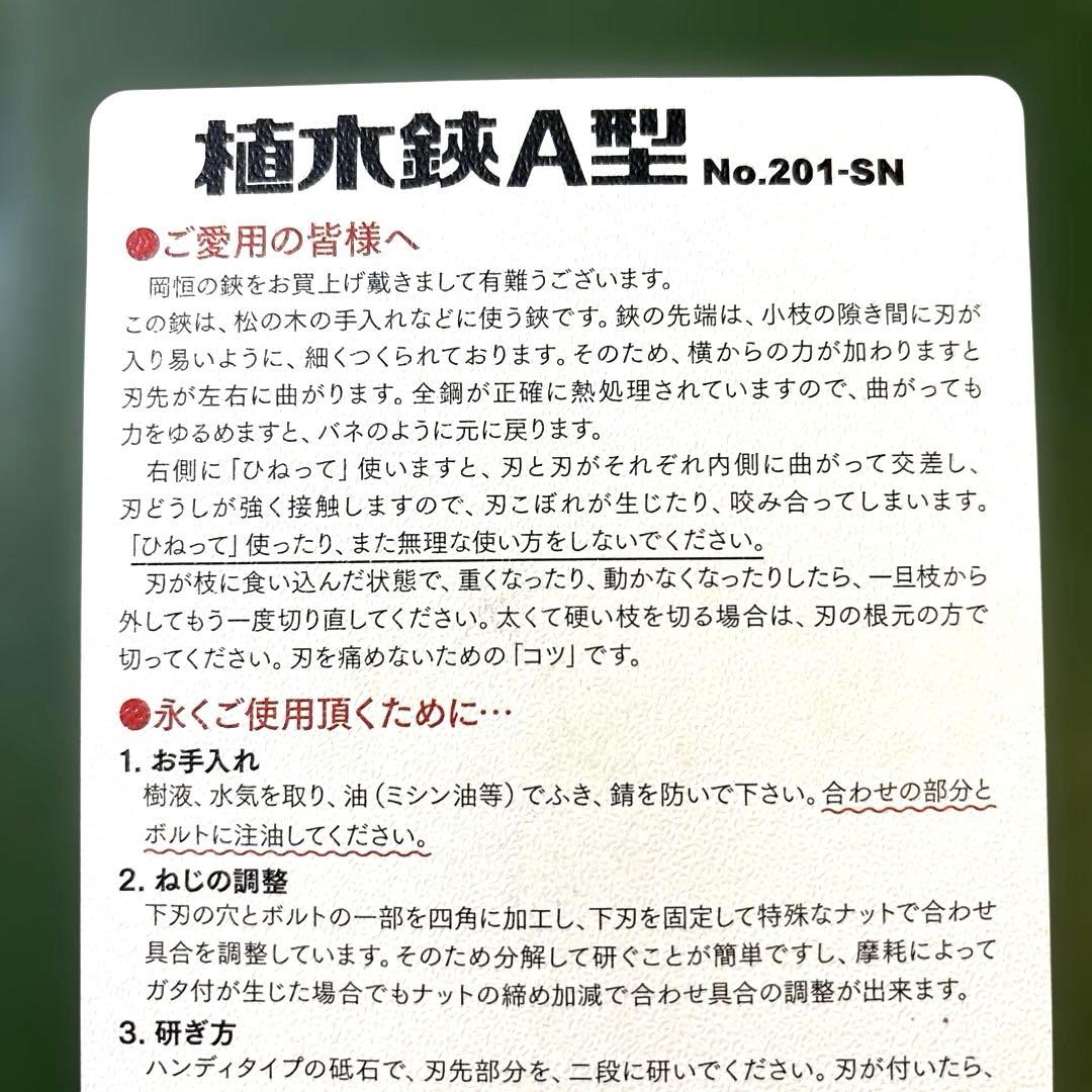 【新品未使用】岡恒 植木鋏 A型 201-SN 日本製 剪定用 はさみ