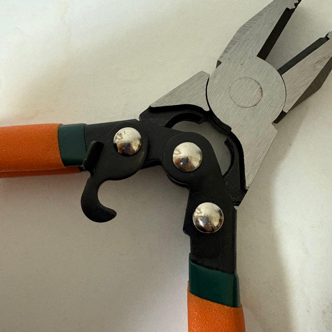 【デザイン】コンポジットレバーのデザインは、より大きなカッティングパワーと、より楽な操作性とグリップを提供します。 バネ付きで、腕への負担が少なく、連続使用しても疲れにくいです。回転式サムラッチデザインは、安全な保管を可能にし、プライヤーを損傷や不慮の事故から守ります。 ✅