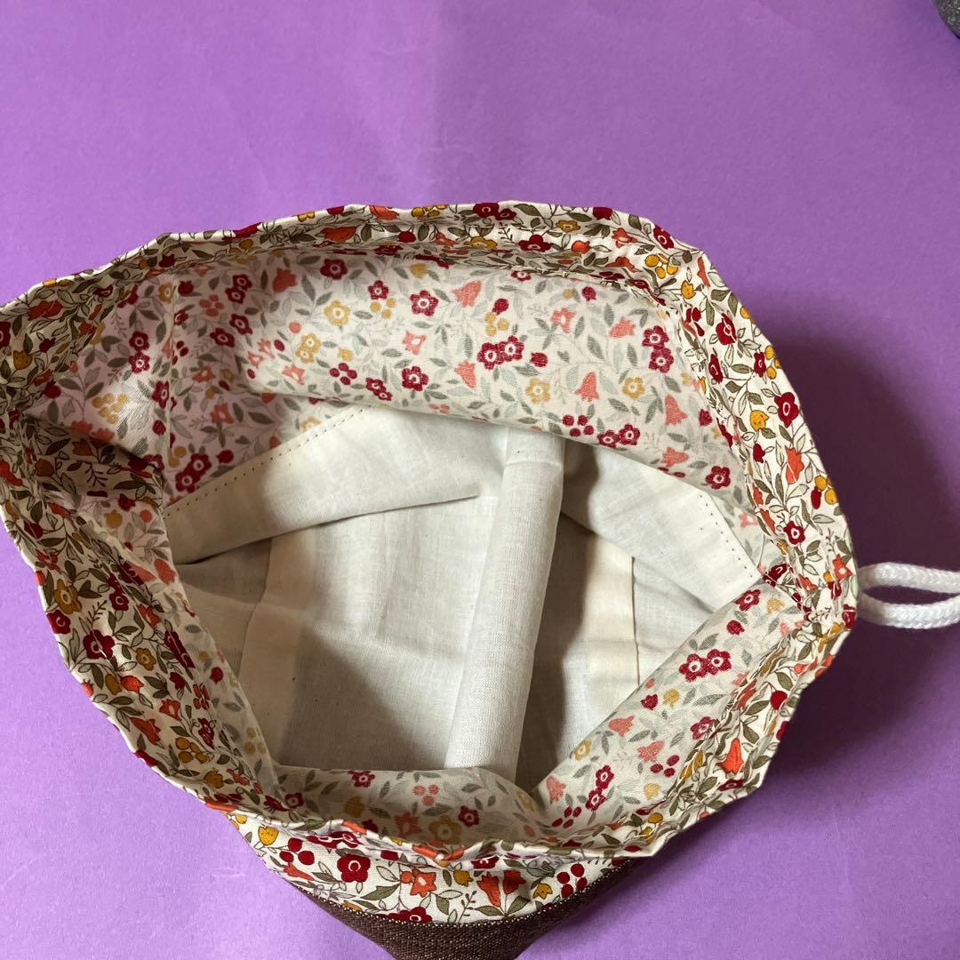 底二重仕立てのお弁当巾着(小)小花茶色系