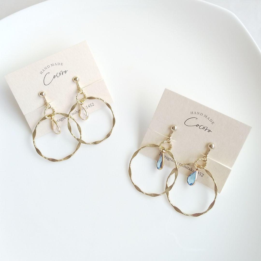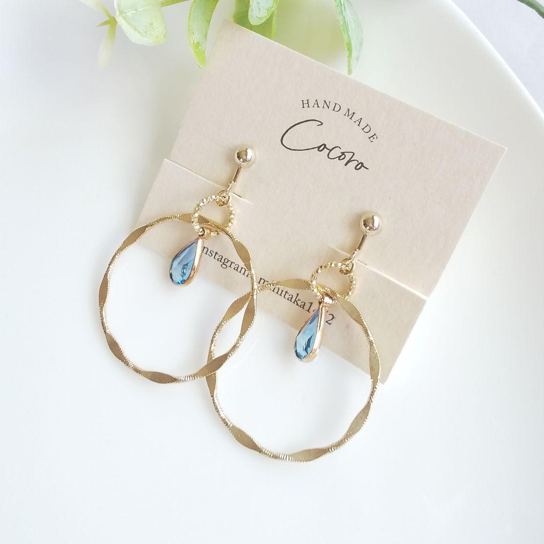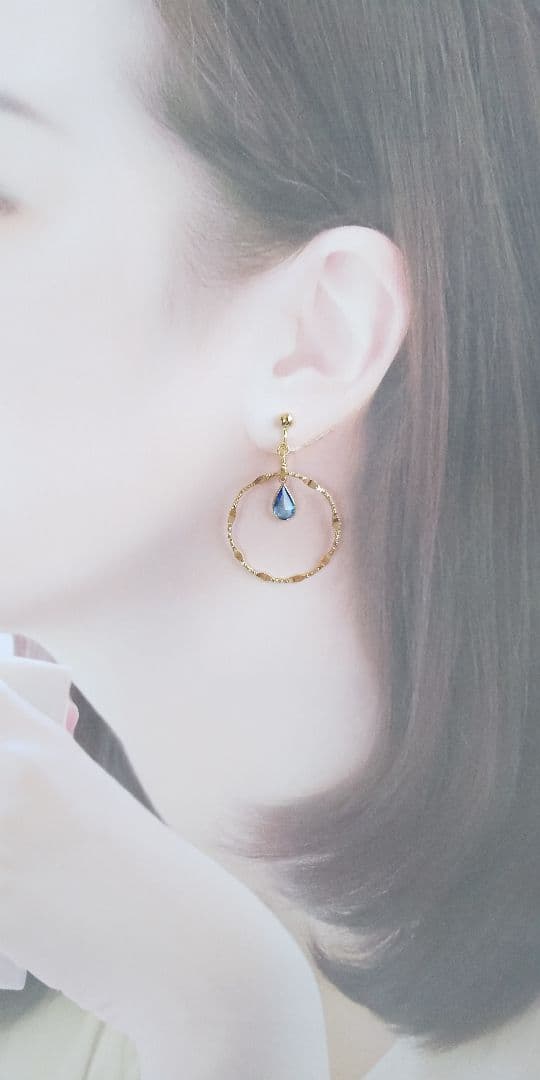 ラウンドフープとしずくストーンのイヤリング ピアス(ブルー)*ハンドメイド