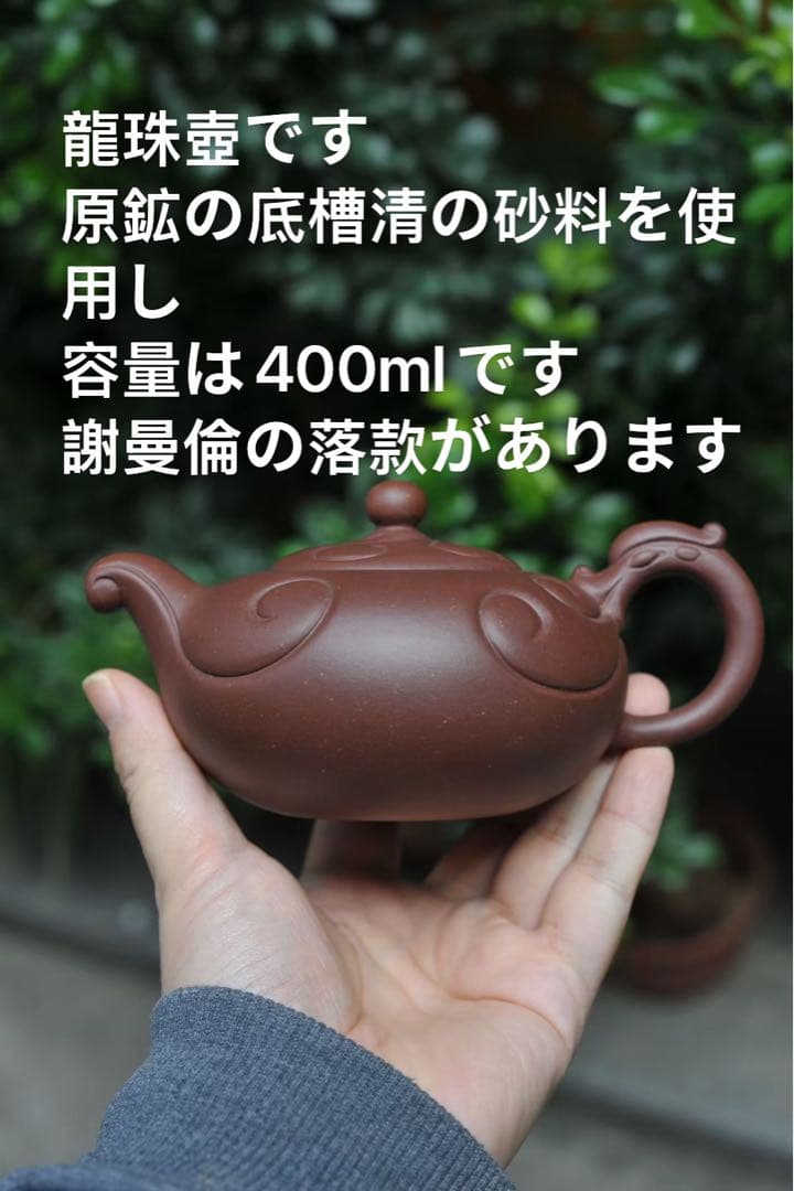 紫砂製の急須で、400mlの容量を持ち、手作りの装飾が施されています。