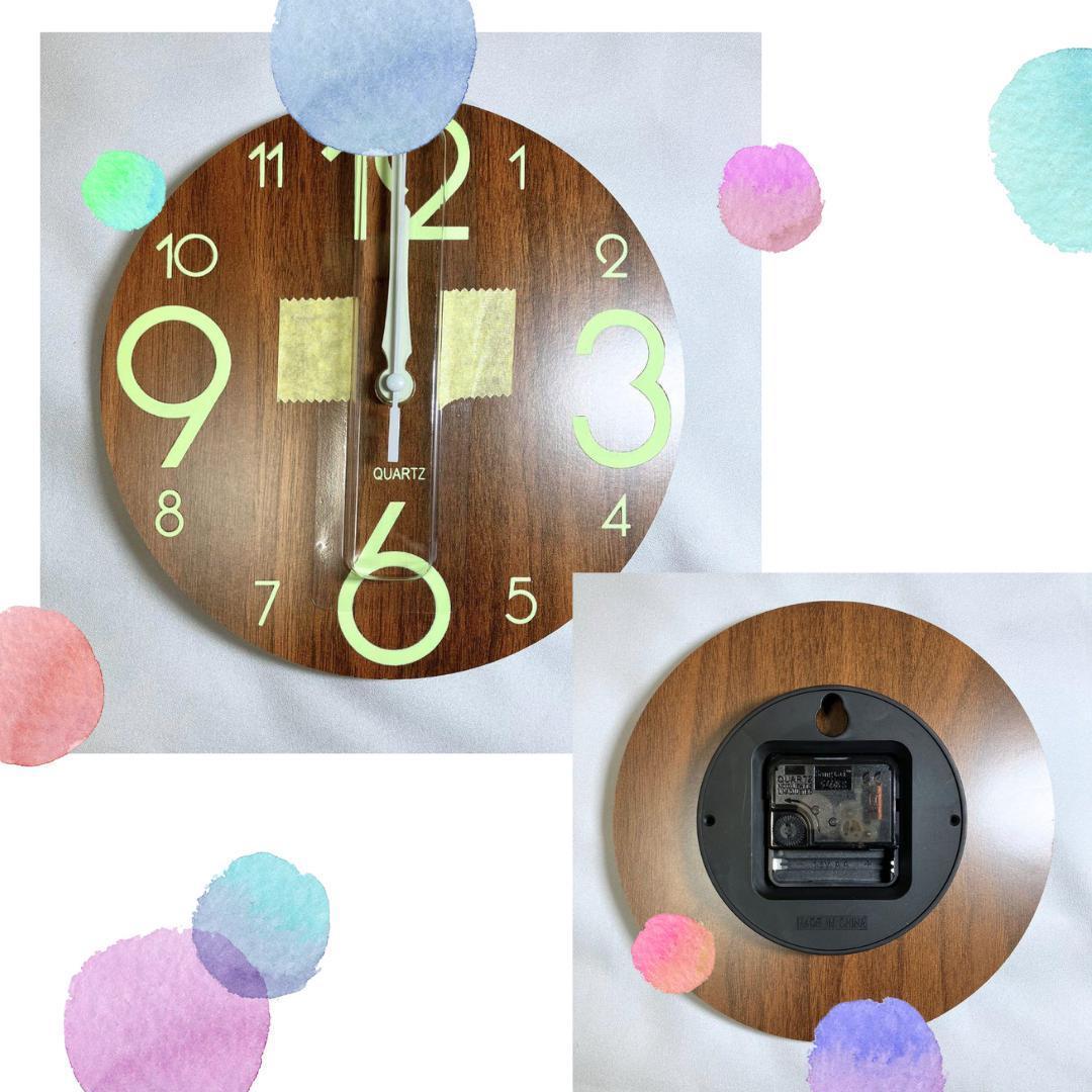 シンプルな木目調の夜間は蛍光なタイプの時計です。