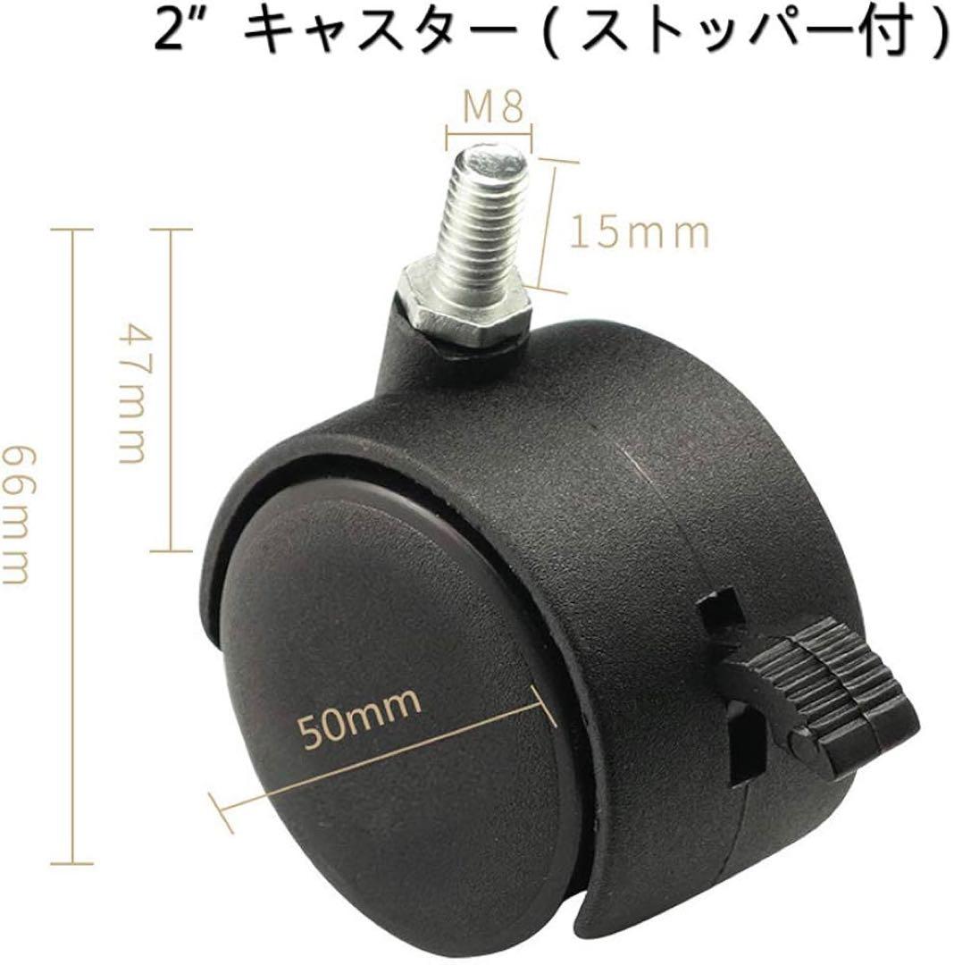 BESTU ネジ式キャスター ねじ込み式 キャスター 自在 ストッパー付 50mm 旋回 M8 8mmA型ねじ式 ワゴン ショッピングカート 家具用 交換タイヤキット DIY 双輪 ハードゴムキャスター 50径 4個組