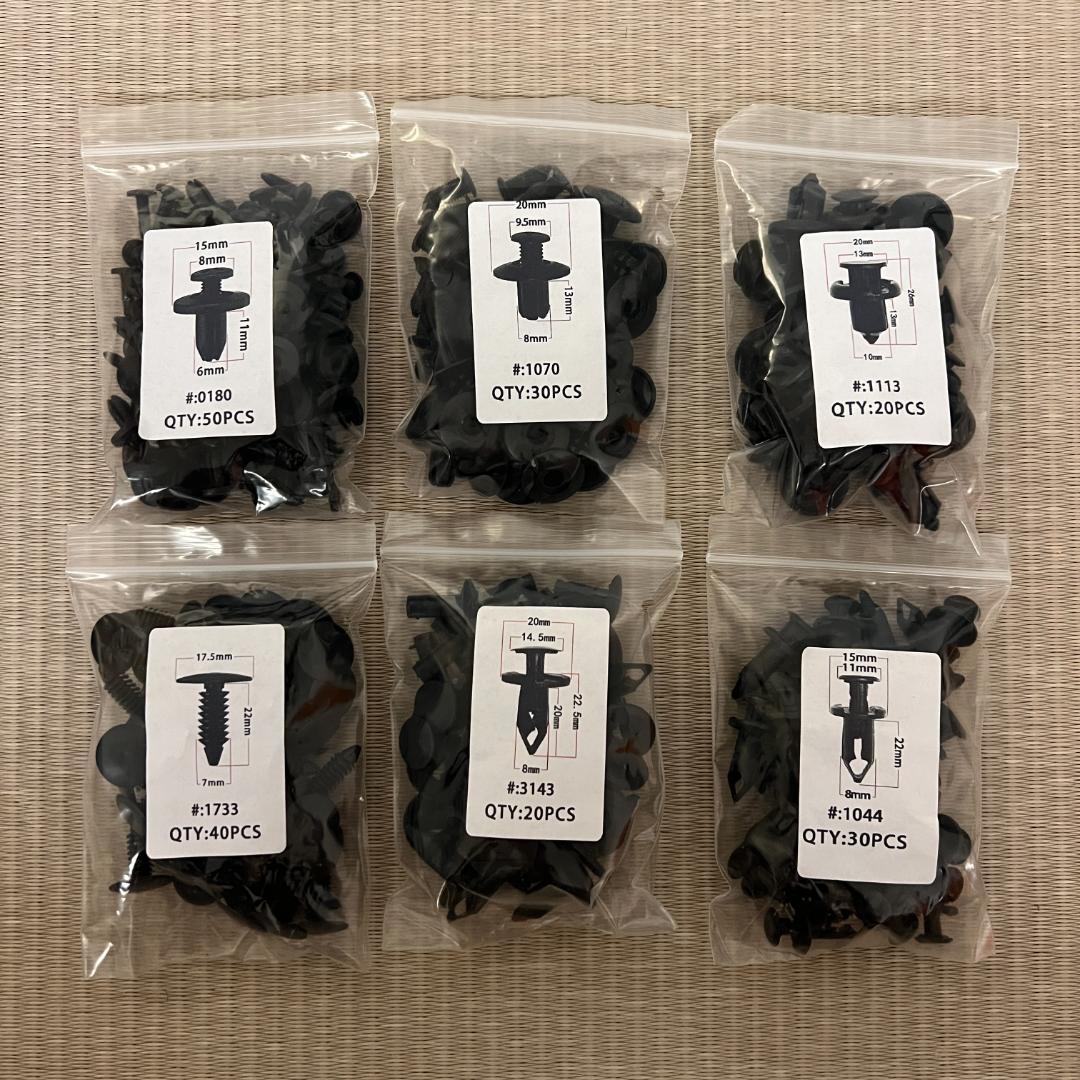 【セット内容】 ・プッシュリベット190個 6mm・7mm・8mm・9mm・10mm ※適応可否のご質問はご遠慮ください。 サイズを参考にご自身でご判断をお願いいたします。