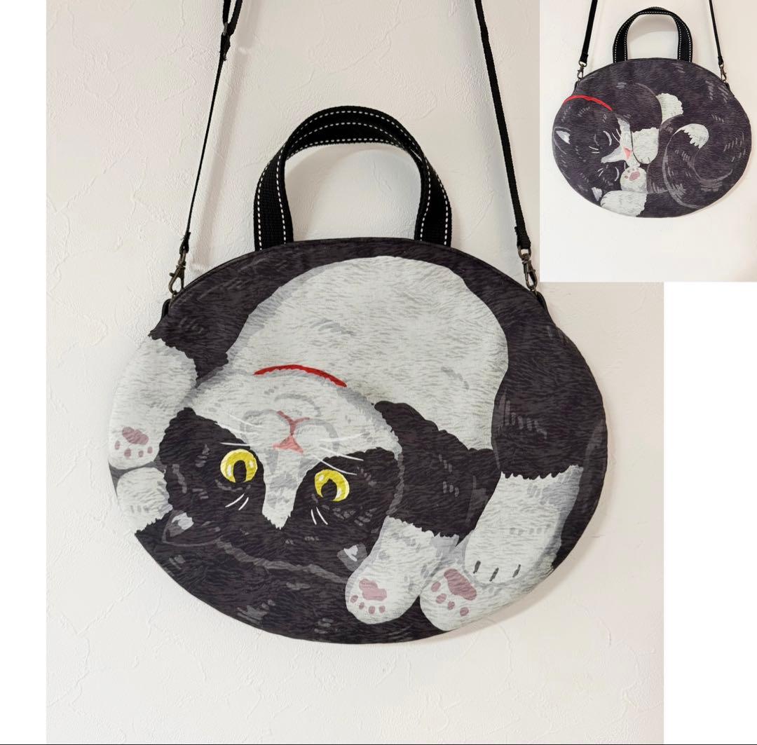 丸まる猫 ハチワレにゃんこ 2WAYバッグ 丸バッグ 猫 cat ショルダー付