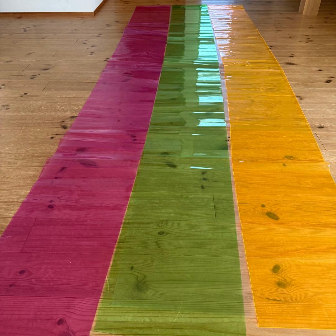 【柔らか素材の透明カラービニール 生地 緑色〔みどり〕1セット売り】 イベント関係に使用する為、知り合いの会社で作ってもらい購入したものです。万が一の事を思い多めに揃えましたが、こちらは予備で使わなかった物になります。 〔色〕緑色 〔厚さ〕約0.1mm 〔サイズ〕約 縦289cm×横30.5cm 〔個数〕1枚 ※写真に出てる突っ張り棒は小さくて長さが足りなかったのですが、サイズにあった物を使用すると、このように突っ張り棒を入れる部分になっていて、カーテンのようにも出来ます。 〔今回イベントではカーテンとして使いました〕 他にも、中身が透けて見えるポーチ・バックなどオリジナルの作品を作ったりしてる方も、いるようです。お子さんとの工作にも良いかと♪ 他の色あります。同じ寸法の〔ピンク色〕&〔黄色〕もありますので、 #ペル・ビニールシート から確認してみて下さい。 〔他の色のシートとまとめ売りも出来ます〕 ‥‥‥‥‥‥‥‥‥‥‥‥‥‥‥‥‥‥‥‥‥‥‥‥‥‥‥‥‥