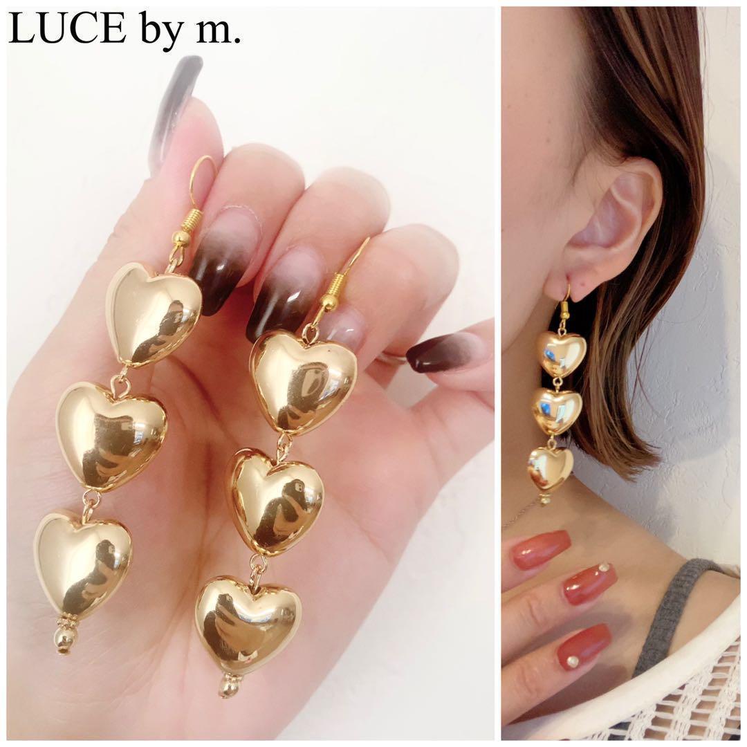 ゴールドの3連ぷっくりハートピアス(イヤリング)です⭐︎
