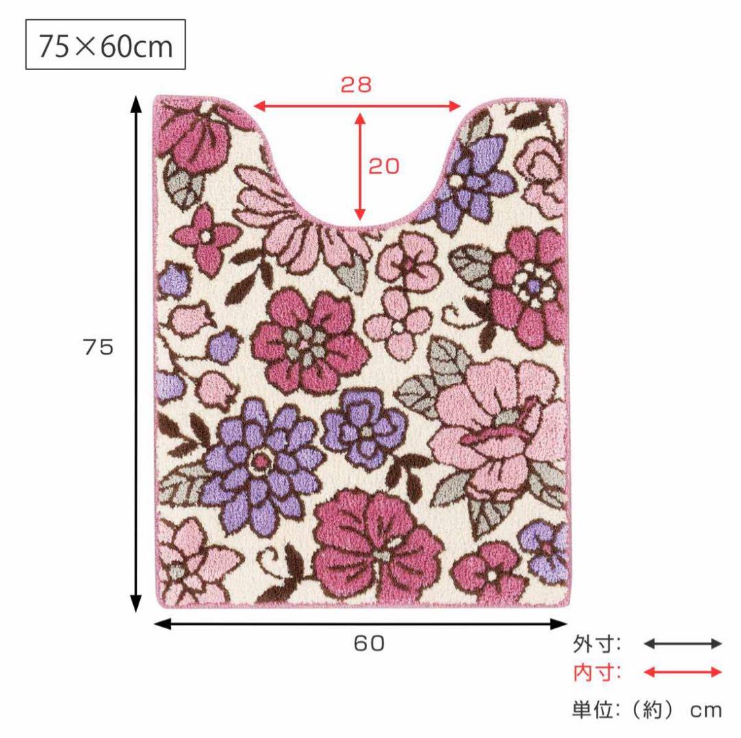 ■約75×60cm ロングタイプ 可愛い花柄のトイレボアマットです。 色合いもとても素敵で他にない感じです^^ 新品未使用ですが自宅保管なのと使用するつもりでタグ取りましたのでご理解いただける方お願い致します❁⃘*.゜ 後ろにしっかりとした滑り止め加工があり安いマットとは違いがわかります^^ 表面のボアも肌触りが良くふかふかしています。 寒い季節になるとロングのマットおすすめです★ 写真5枚目に縁からホワンと出てるところ写真撮りました❃気になる方はお控えください♪ トイレマット シャーロット 約75×60cm ( トイレ マット 足元マット ロング 洗える 花柄 トイレタリー 洗濯可 75×60 ロングタイプ 北欧
