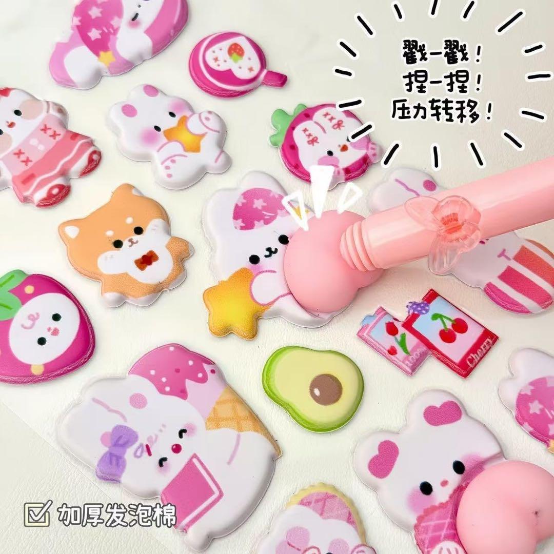 4枚 ぷにぷにおしりシール かわいい 立体ステッカー うさぎ 3Dシール