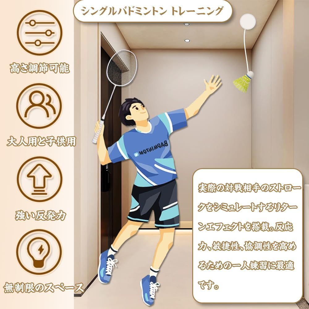 バドミントン 自動バックバトミントン 初心者バドミントン練習 セットバドミントン シングル自宅練習趣味シングル 一人練習 愛好者対応 弾性 バドミントン練習器具 自習 で 持ち運びに 便利 初心者 トレーニング セット 練習補助 (バドミントン X3、ノンマ一キングフックX3、バランスコ一ドX3、ストレッチロプX40)