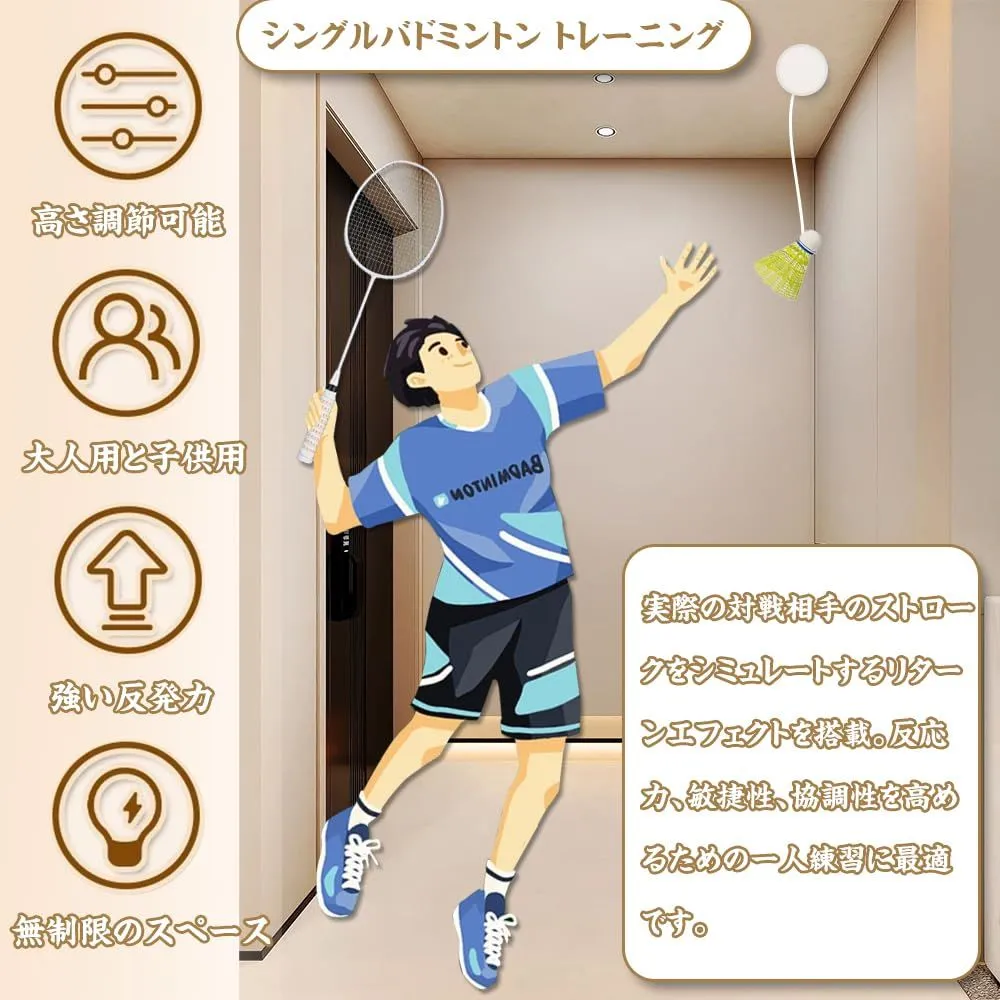 レベルアップ:この便利な室内自動リターンバドミントンを使って、簡単にバドミントンの技能を向上させる。初心者が簡単なトレーニングを通じて素早く上手になることができ、上級者のスキルアップに対するトレーニングニーズを満たすことができ、年齢やスキルレベルの異なるすべてのバドミントン愛好家の日常的なトレーニング用具として適しています。
