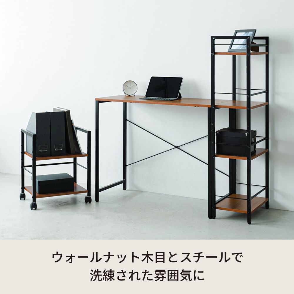 【バリエーション】を必ずご確認ください。 ・選択された種類の商品を1点お届けいたします。 ------------------------- ウォールナット木目とスチールを組み合せたスタイリッシュな家具シリーズ 上質な空間を演出する美しい木目が特徴のウォールナット棚板。 ブラックスチールと組み合わせた雰囲気あるデザイン。 程よい高さでデスク下に収まるコンパクトサイズ。 書類やデスク周りの収納にピッタリ。 キャスター付なので、デスク周りだけでなく ソファサイドやリビングなどでの使用も便利です。 単品使いはもちろん、同シリーズのデスクラックやワゴンと 組み合わせて使うことでモダンで便利なワークスペースに。 ---------------------------------------------------------------- ・上部の棚は3段階に高さ調整可能 ・奥行40cmのスマートなデスク(JST-08)にピッタリ収まるサイズ感 ・同シリーズをセット使いする事でお部屋に統一感が出ます ・キャスター付 ・ウォールナット木目 ・全3アイテム ----------------------------------------------------------------