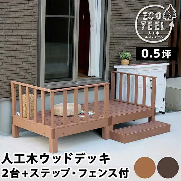 ■商品名人工木ウッドデッキecofeel(エコフィール)2台ステップ・フェンスセット