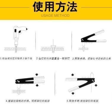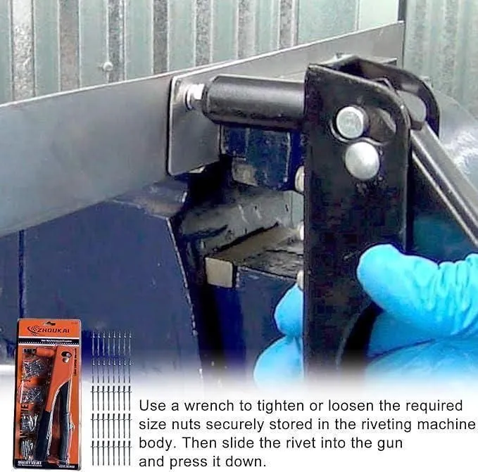 使い方は簡単です。工具にリベットをスライドさせ、しっかりと押し付けます。 リベットはリベット本体内にしっかりと収納されており、安全性と利便性に優れています。