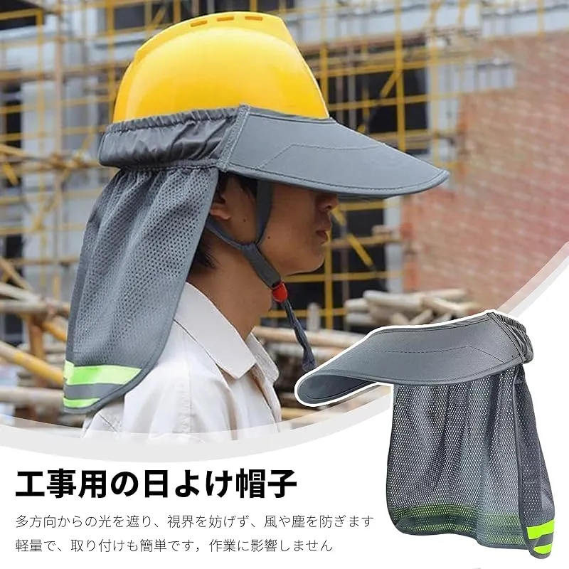 Seiunn ヘルメット 日除け ヘルメットサンシェード サンバイザー UVプロテクション 高視認性 通気 速乾 熱中症対策 暑さ対策 軽涼遮熱帽子 建築現場 工事 屋外作業 メッシュサンシェード 取付用 グレー 0