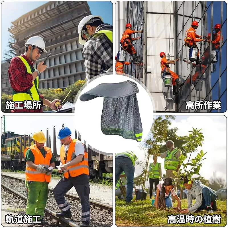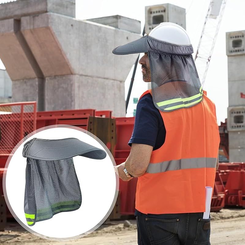 【ヘルメット日除け】広いつば+ネックメッシュショールのデザインで、顔と首を同時に日差しから遮ることができ、紫外線を遮断します。建設、農業、園芸などの屋外作業はもう日焼けの恐れがありません。