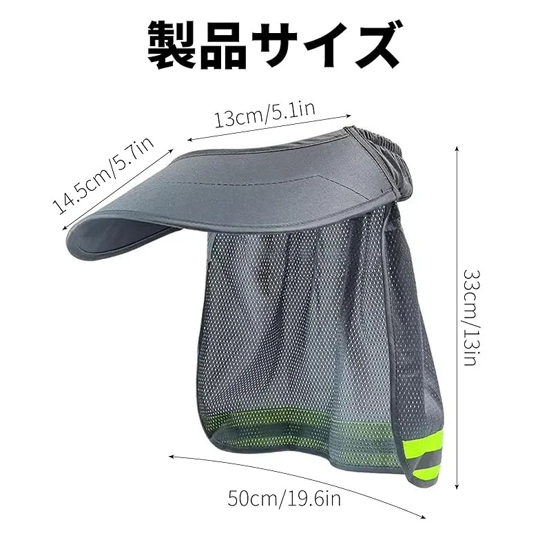 【製品素材】ヘルメットサンシェードは高品質のポリエステル素材+通気性の良いメッシュで作られており、軽量で耐久性があり、効率的な空気循環と頭部と首からの熱を素早く排出します。全体の重量は軽く、長時間の着用でも負担が増えません。
