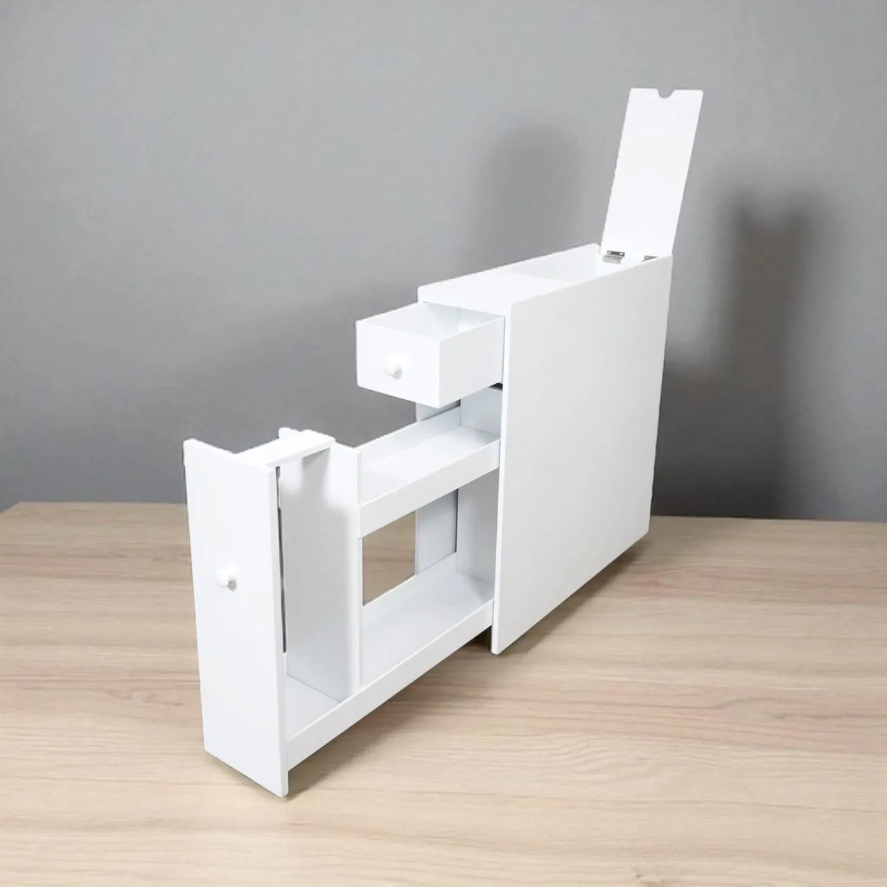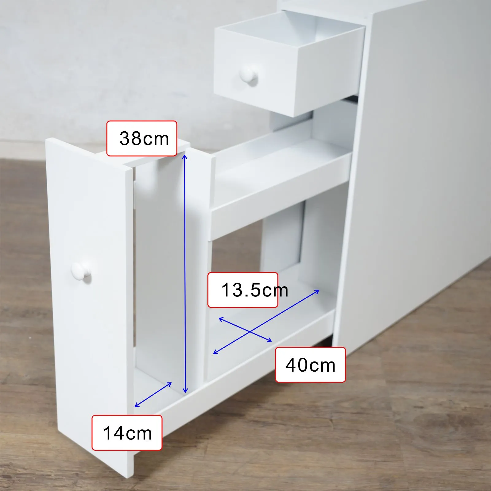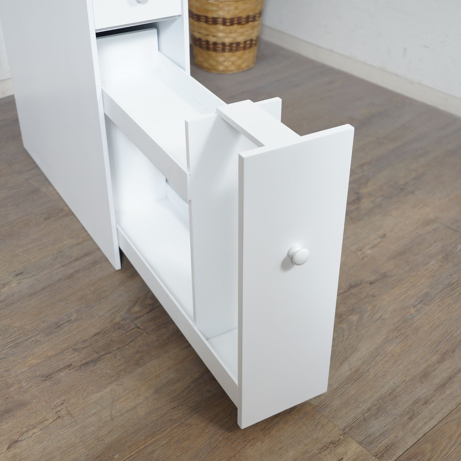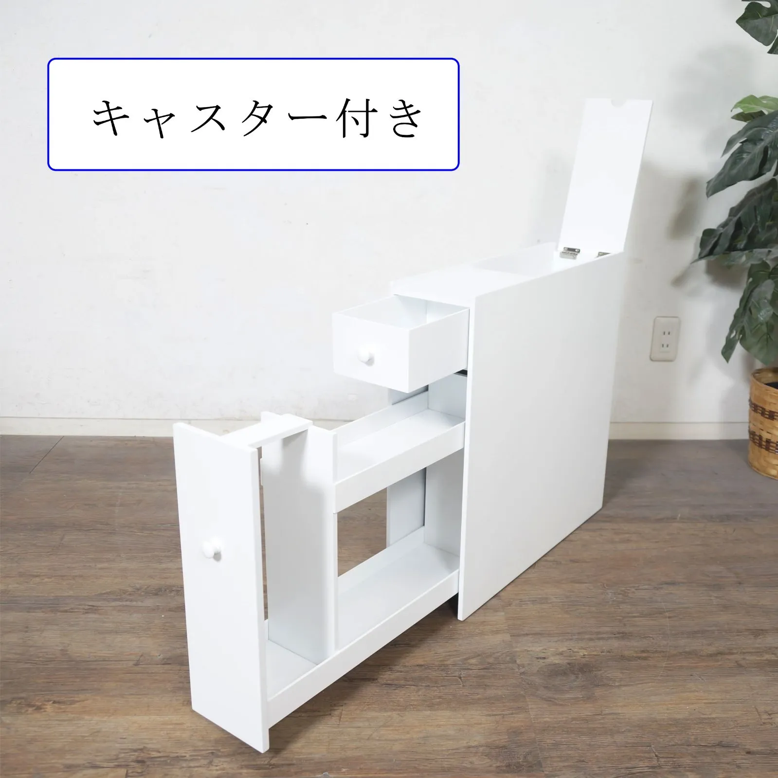 ■ 直径13㎝の太巻きトイレットペーパーにも対応。隠しキャスター付きで掃除もしやすいトイレラック