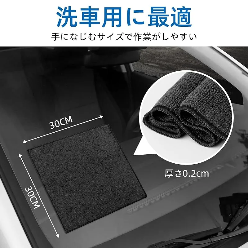 【新品】 洗車 マイクロファイバー タオル 30x30cm 黒 60枚 超吸水 速乾 傷防止 小判 厚手 拭き上げ クロス 掃除 洗車用品 TARO WORKS 0