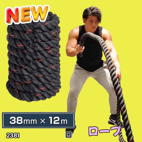#2381 バトルロープ 38mm × 12m トレーニングロープ 9.2kg ジムロープ スイングロープ 筋トレ 格闘技 プロ仕様 ※北海道、沖縄本島、沖縄の離島、その他離島へは別途配送料有り