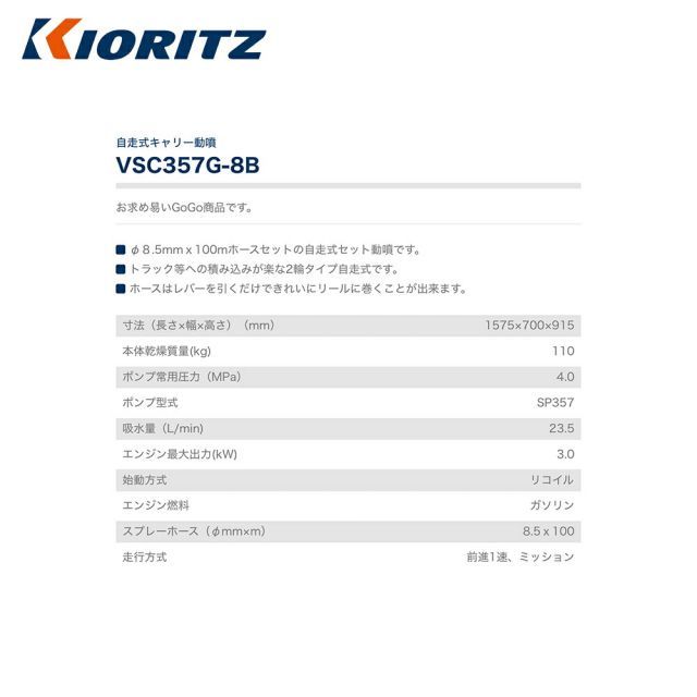 共立 やまびこ 動力噴霧機 自走式キャリー動噴機 VSC357G-8B 吸水量23.5L/min