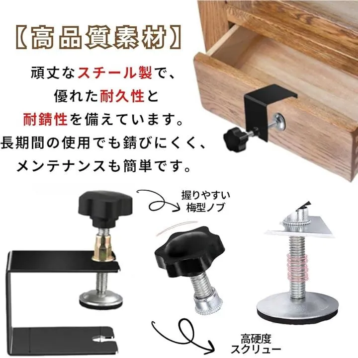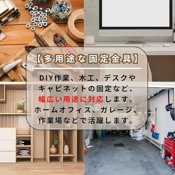 「多用途な固定金具」DIY作業、木工、デスクやキャビネットの固定など、幅広い用途に対応します。