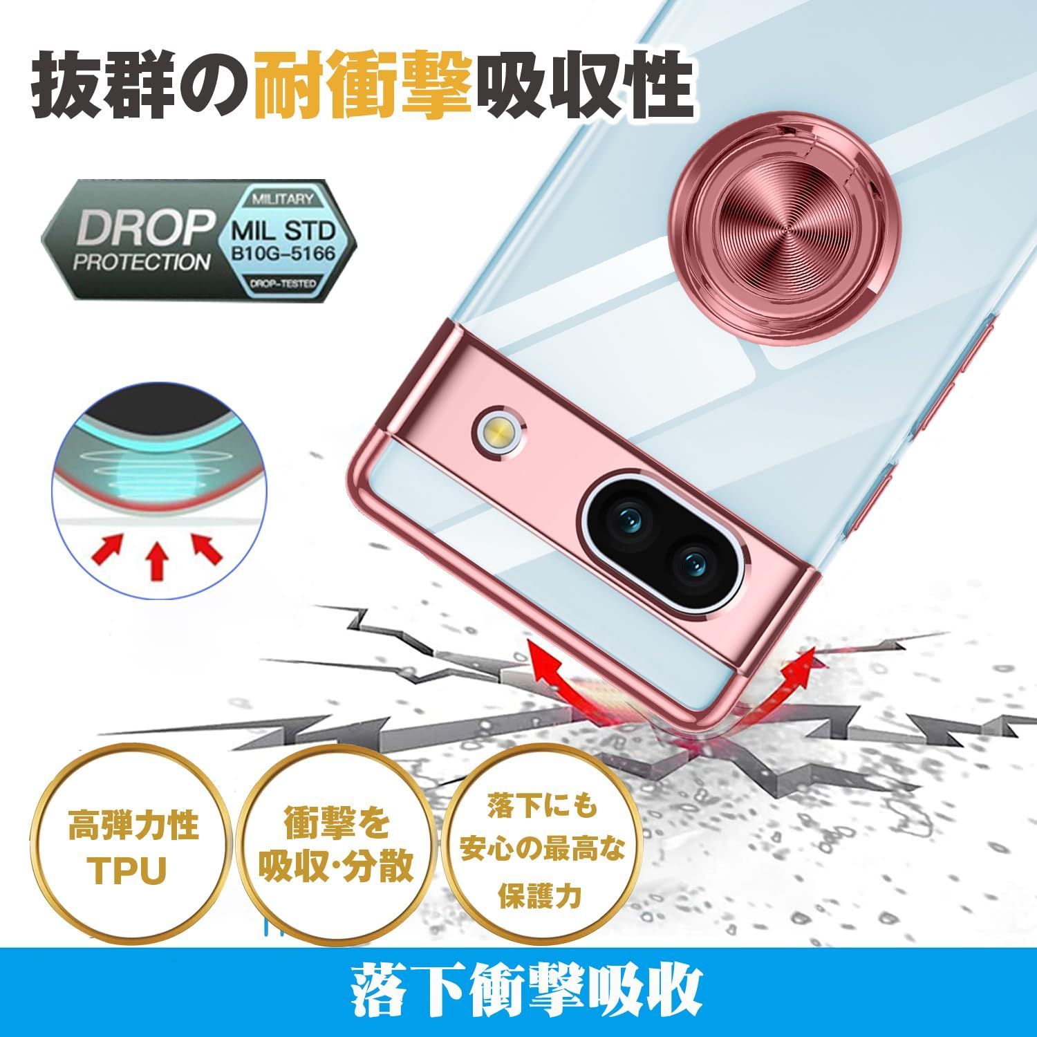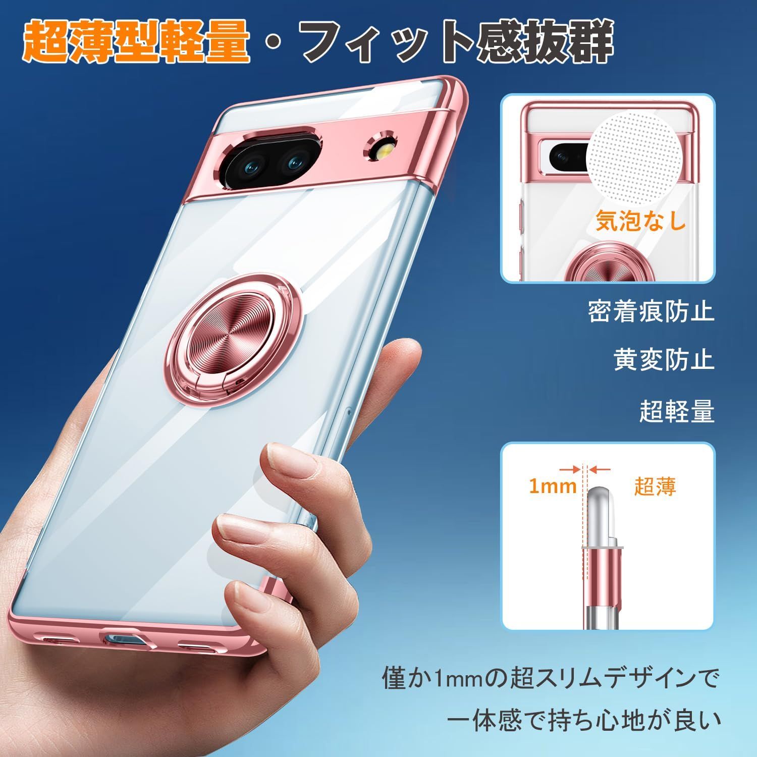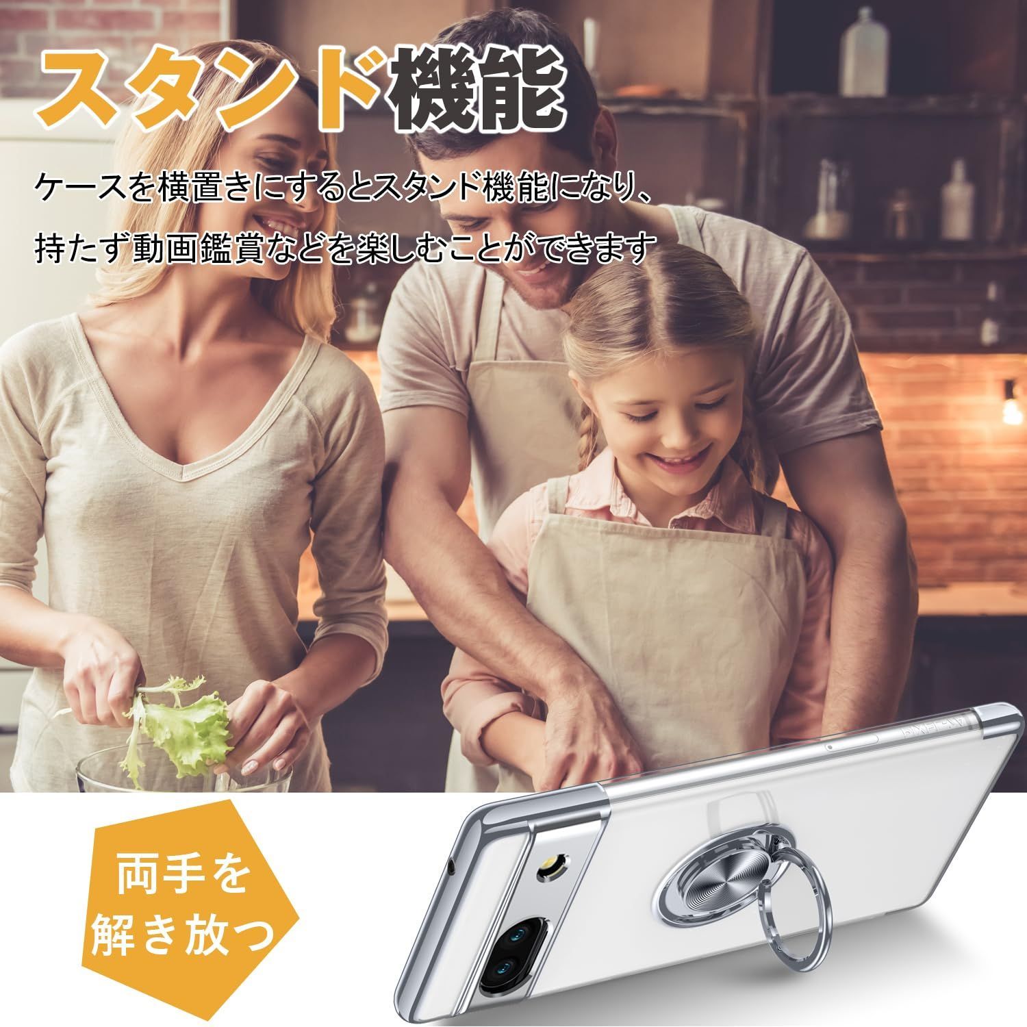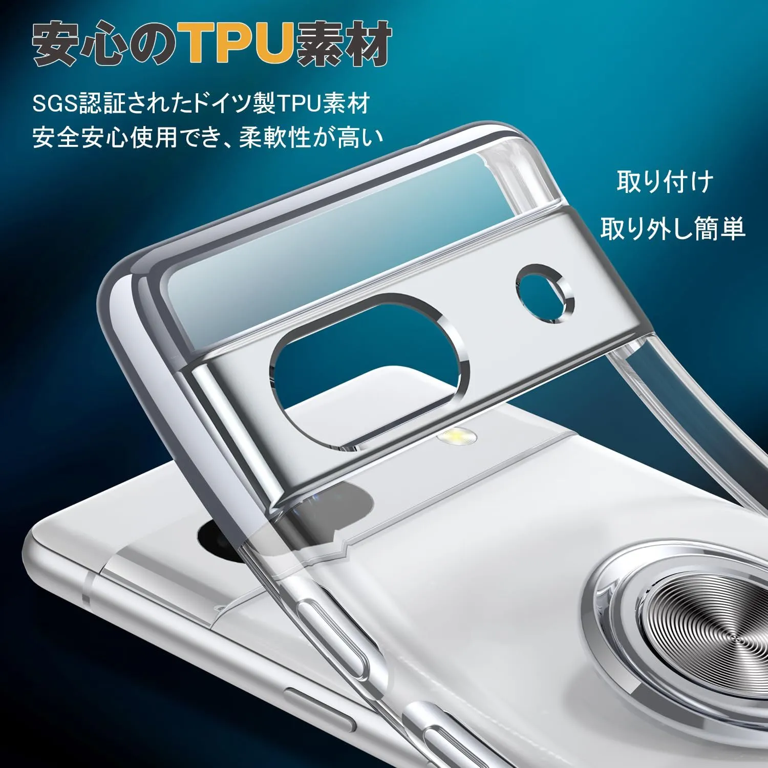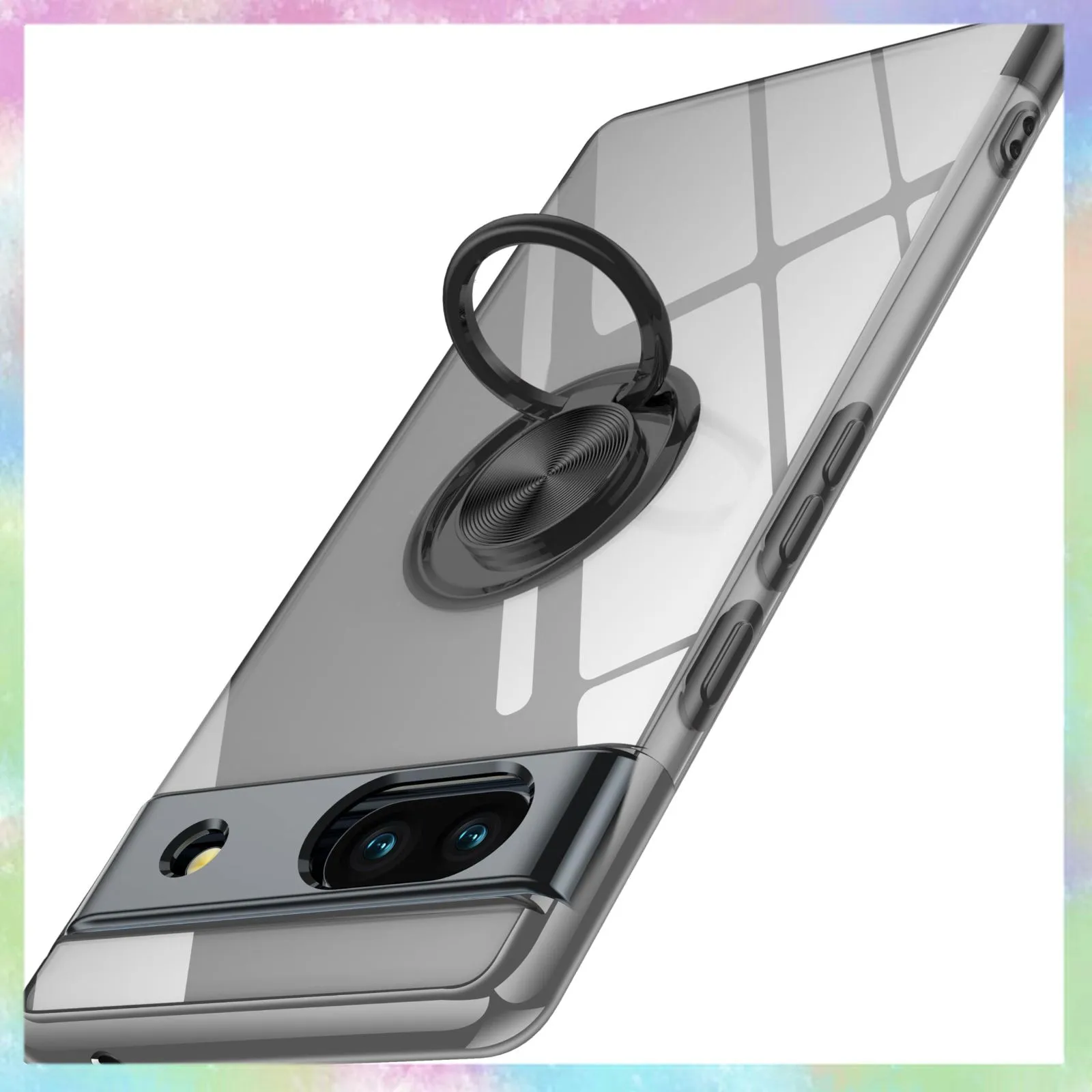 Google Pixel 8a 用 ケース クリア リング付き ピクセル 8a カバー 透明 おしゃれ OURJOY スマホケース メッキ加工 ソフトケース 耐衝撃 軽量 薄型 ストラップホール付き スタンド機能 車載ホルダー対応 携帯ケース・ブラック