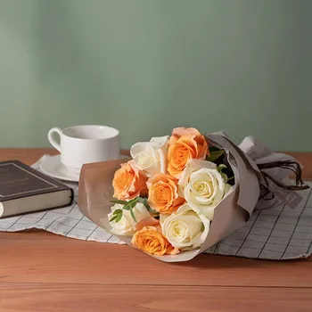 商品内容:おまかせバラ(オレンジ・白系)×8本、うさぎイチゴ・くまチョコ×各1個、栄養剤10ml(50倍希釈タイプ)、お手入れのしおり付き