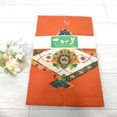 未使用 名古屋帯 オレンジ 橙 扇 花 大柄 カジュアル ポップ 華やか OBI