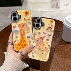 キリン&ゾウの卡通 保護ケース キラキラストーンあしらい 全包み 耐衝撃 ソフトケース iPhone17/17pro/17pro max/16/15/14/13 多機種対応