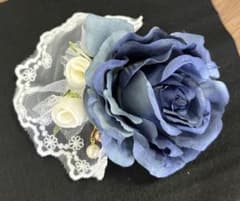ハンドメイド コサージュ 青バラ レース パール ヘアアクセサリー