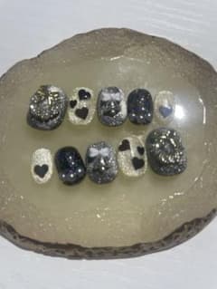 現品♡秋冬ネイル マグネット スナ系 ハート 爪先ラメ ビジュー ネイルチップ