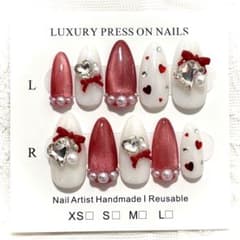 #08 ネイルチップ ワンホン 量産型 マグネット リボン ボルドー 赤